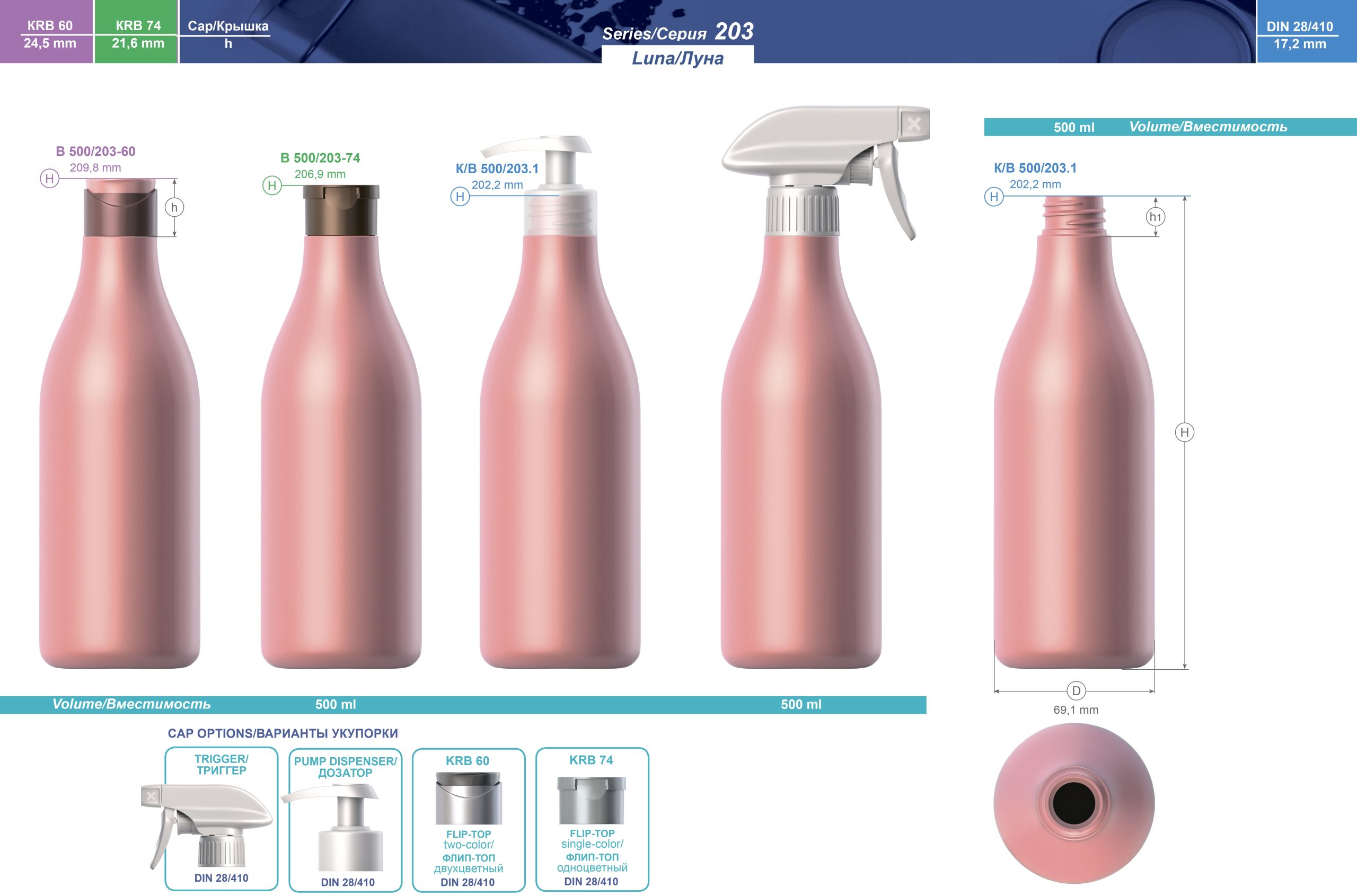 Флаконы HDPE B 500/203-60, B 500/203-74 с крышкой флип-топ.