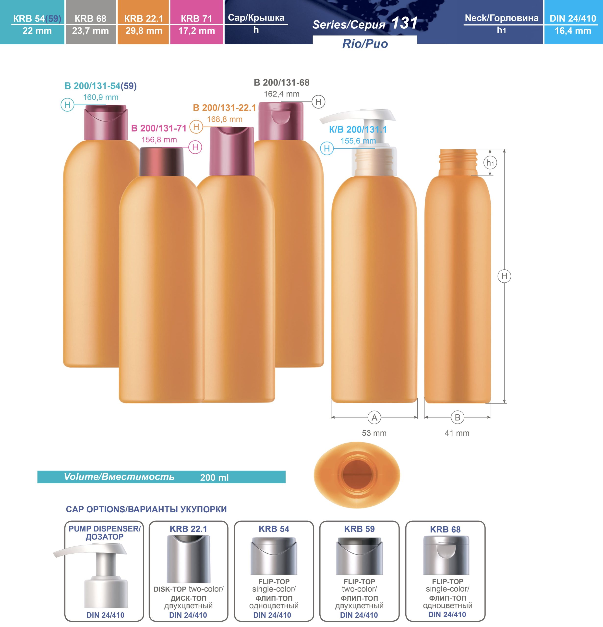 Флакон В 200/131-22.1 с двухцветной крышкой диск-топ KRB22.1.