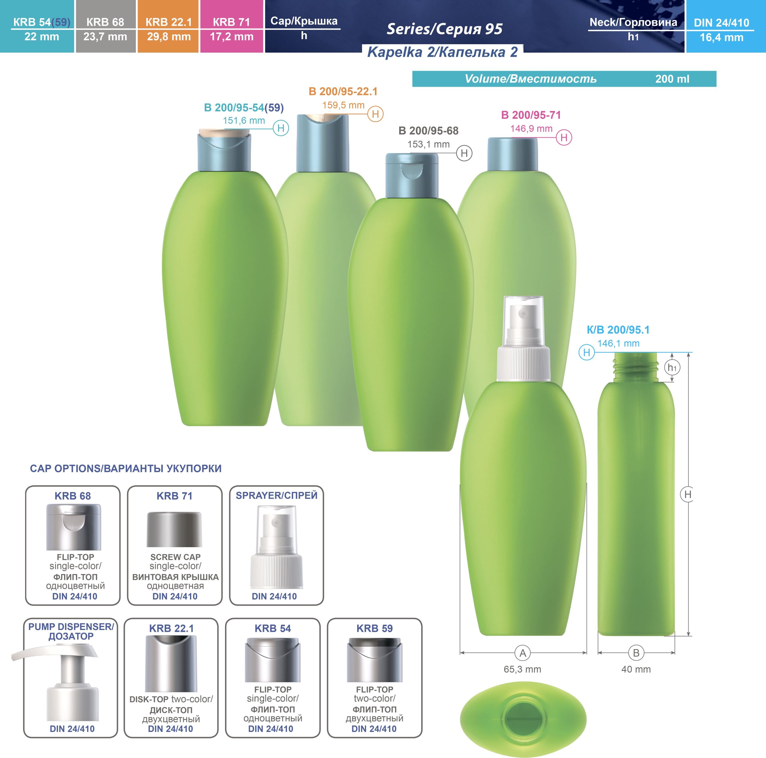 Флакон B 200/95-22.1 с двухцветной крышкой диск-топ KRB22.1.